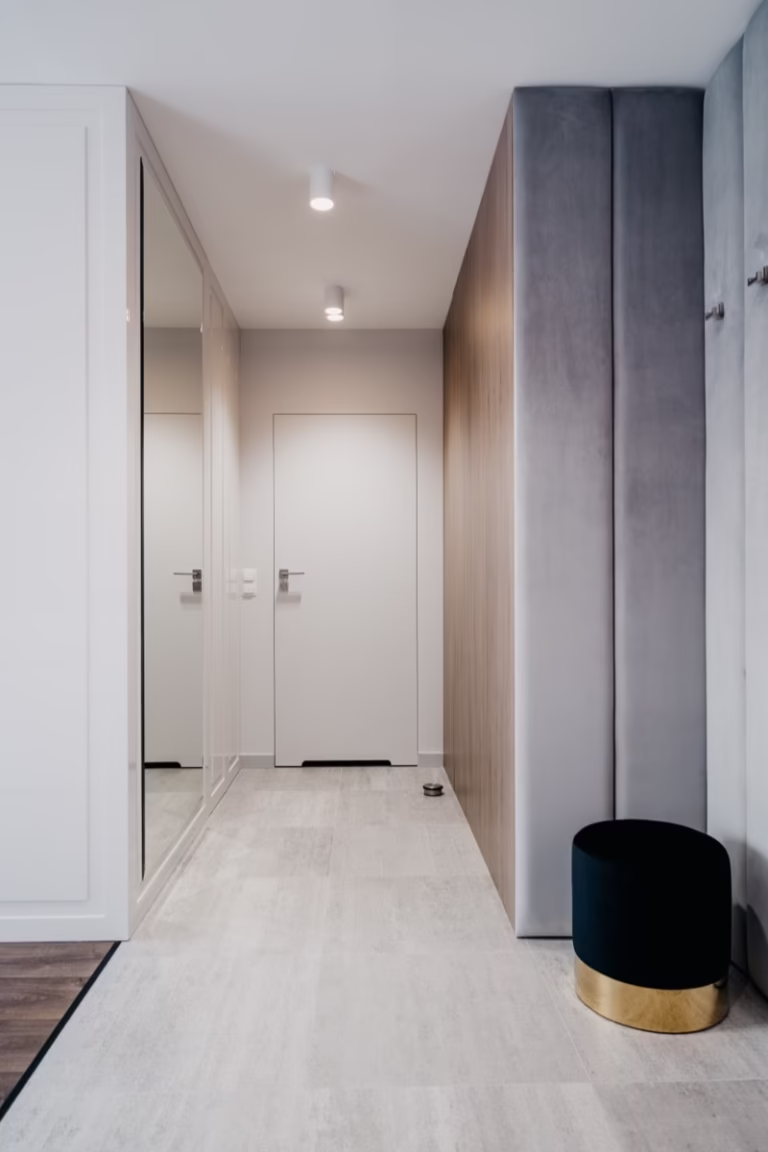 Projekt mieszkania z rynku wtórnego. Tego typu mieszkania wymagają specjalnego podejścia i zaangażowania. W tym dwupoziomowym mieszkaniu, głównym założeniem było maksymalnie powiększyć przestrzeń. Klientowi zależało na przestronnym salonie z kuchnią i jadalnią, wygodnej łazience na parterze. Likwidacja jednego pokoju pozwoliła na uzyskanie tego założenia. Na piętrze zostawiliśmy dużą garderobę, pokój gościnny z funkcją gabinetu oraz sypialnię z prywatną łazienką.