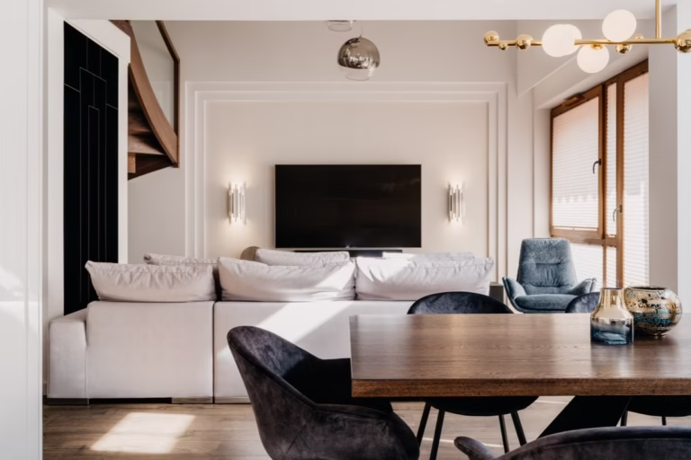 Kuchnia miała być tłem dla salonu i jadalni. Jest prosta, elegancka ale nie dominująca. Daje poczucie przestrzeni, ale nie przytłacza. Oczywiście ważna była dla nas również funkcjonalność i wygoda użytkowania.