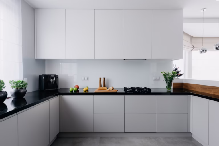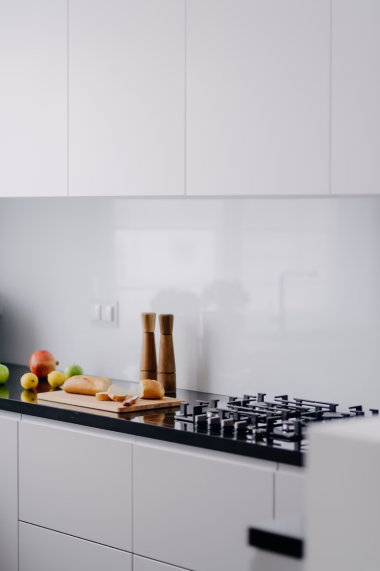 Wykonaliśmy też kryte drzwi do spiżarni. Ich skrzydło tworzy jednolitą płaszczyznę ze ścianą. Można było jeszcze wykonać drzwi otwierane na klik, ale wygrała funkcjonalność. W kuchni lepiej otwierać je przy pomocy uchwytów.